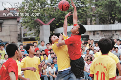 武漢市45中學的師生籃球賽,體現(xiàn)“師生共同發(fā)展”的德育理念。