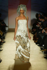 時尚的實驗---如它所被定義的那樣---以擁有無數(shù)的褒獎和特殊的證明為榮耀,并在世界范圍內(nèi)擁有無數(shù)的追隨者。她設計的多樣性使將她帶到比利時首席設計師Micha Van Hoecke的服裝秀去設計高級女裝。她明了且有棱角的風格在她對顏色、材料和傳統(tǒng)的運用上無不發(fā)揮的淋漓盡致。Marella Ferrera的風格被描繪成既冷靜又線條明朗,通過對于一些原始材料的使用,像熔巖,玻璃,海芋,百合,無色水晶,刺繡雕刻,她常常創(chuàng)造出一些微型的藝術(shù)品.西西里亞、拉瓦、十勝石、陶瓦、無色水晶、銅、紙草以及紡織紙品,軟木和棕櫚樹根、皮革、緞帶、所有的蔬菜和動物的毛皮等等都會成為她穿著的重要的靈感來源。"...服裝必須是完美協(xié)調(diào)穿著者的東西,而不能讓人成為服裝的傀儡..."