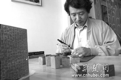 荊楚網(wǎng)(楚天都市報)(記者沈秋黃泳波實習生沈雙)左手持凍石,右手執(zhí)刻刀。昨日,在記者面前,僅用了1分鐘,柴有煒便如行云流水般刻出一方甲骨文印章。