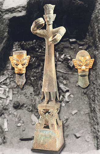 青銅立人像:推測(cè)為神像(中,高260.8厘米)