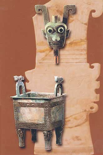 青銅雙面神人頭像:具體用途不明(上,通高53厘米)