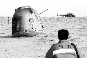 如今,“神舟”6號發(fā)射在即。與“神舟”5號相比,“神舟”6號的各種技術狀態(tài)又有質(zhì)的飛躍。為了滿足載人航天后續(xù)發(fā)展需要,我國已開始選拔培養(yǎng)首批女航天員。廣大航天工作者正在各自的崗位上,默默地奉獻著全部的心血和汗水。今后,他們還將用一個又一個飛天壯舉來證明中國人實現(xiàn)中華民族偉大復興的志氣、信心和能力! 2002年4月1日,“神舟”三號飛船在預定地域著陸。新華社發(fā)來源:《解放軍報》