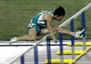 十運(yùn)會(huì)田徑比賽最精彩的大戲10月20日在奧體中心田徑場(chǎng)進(jìn)行,奧運(yùn)冠軍劉翔在萬(wàn)眾矚目之中,以13秒10的好成績(jī)毫無(wú)懸念地奪得冠軍,這是他在全運(yùn)會(huì)中的第二次奪冠,也是他今年在國(guó)內(nèi)比賽中的第二好成績(jī)。(圖片來(lái)自新浪體育)