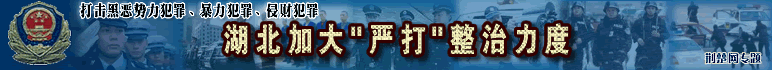 湖北今年嚴(yán)打目標(biāo)確定 省公安廳透露,去冬今春,我省社會(huì)治安大局穩(wěn)定,刑事發(fā)案率有所下降,今年將加大嚴(yán)打整治力度,重點(diǎn)打擊黑惡勢(shì)力犯罪、暴力犯罪、侵財(cái)犯罪……[詳細(xì)]::武漢警方突襲濱江明珠娛樂(lè)城 抓獲45名吸毒者 ::全省交警嚴(yán)查盜搶車(chē) 一假警車(chē)上查處9塊假車(chē)牌::湖北圈定106個(gè)治安整治重點(diǎn) 武漢市5個(gè)地段在列 武漢嚴(yán)打建筑工地惡勢(shì)力 [市政法委 各區(qū)舉報(bào)電話(huà)][把黑惡勢(shì)力趕出工地訪(fǎng)談熱線(xiàn)開(kāi)通]::武漢市政法委副書(shū)記:廣泛發(fā)動(dòng)群眾鏟除沙霸石霸::漢陽(yáng)鏟除沙石惡霸團(tuán)伙 行兇兩年作惡無(wú)數(shù)(圖)