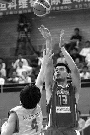今晚,男籃的開局相當(dāng)不錯(cuò),第一節(jié)只讓對(duì)手得了9分,自己拿到23分。局勢(shì)是在第三節(jié)惡化的,由于犯規(guī)過(guò)多,姚明這一節(jié)基本沒上場(chǎng),結(jié)果男籃居然在5分半鐘內(nèi)一分不得,澳大利亞隊(duì)趁機(jī)打出16比3的高潮,將分差縮小到1分。第四節(jié),雙方展開拉鋸戰(zhàn),姚明和大郅輪番攻擊得手,帶領(lǐng)男籃始終壓制著對(duì)手,直到最后5秒的那次制勝一投。