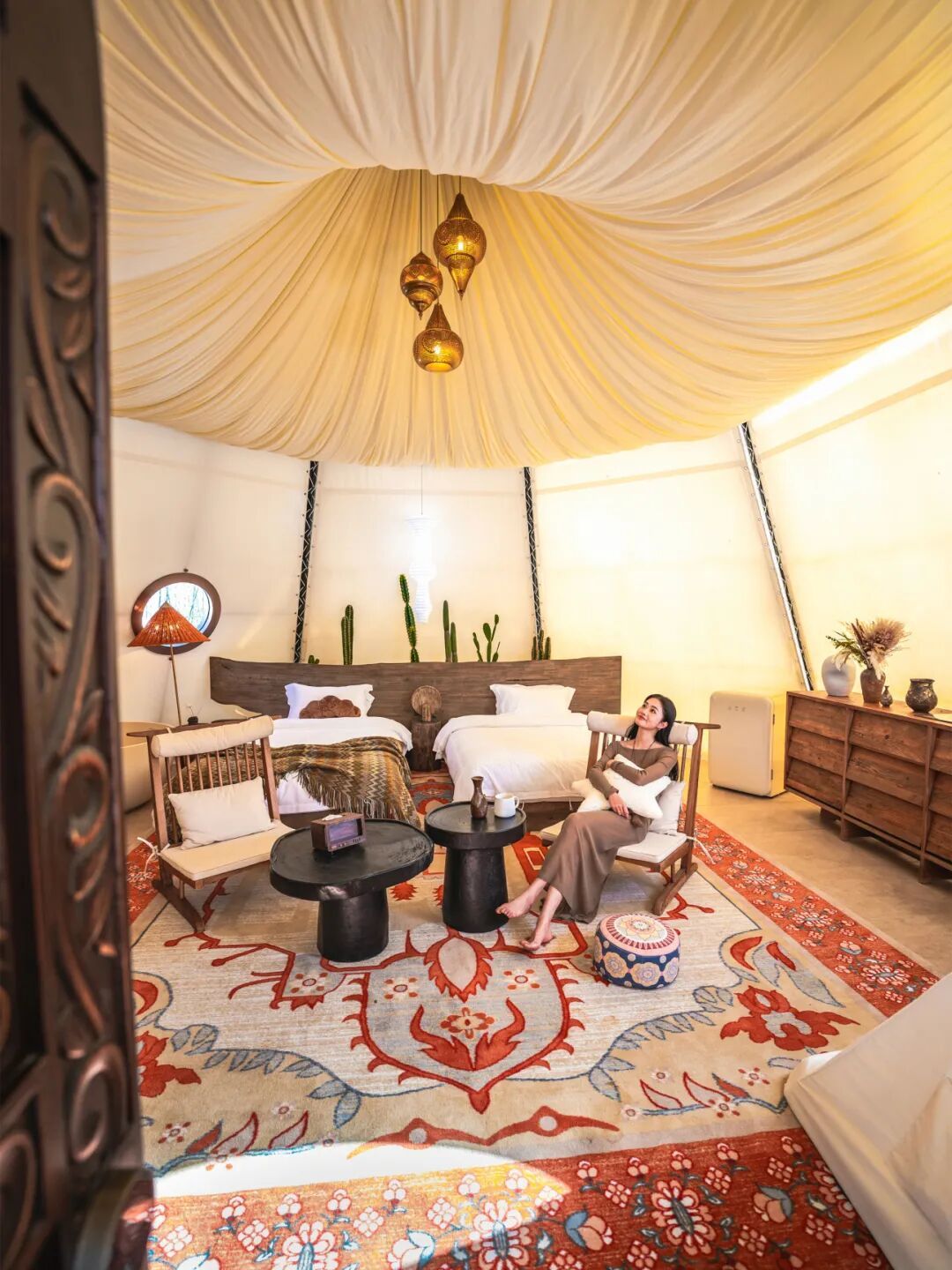 住宿選擇:舒適便捷,適配團隊需求,夢棲谷度假區(qū)三大主題酒店+和韻樓,房型涵蓋標間、套房,可滿足上百人團隊入住。酒店裝修融入草原元素,部分房間推窗可見野,新春期間還會有專屬布置,讓團隊住得舒心又有儀式感。