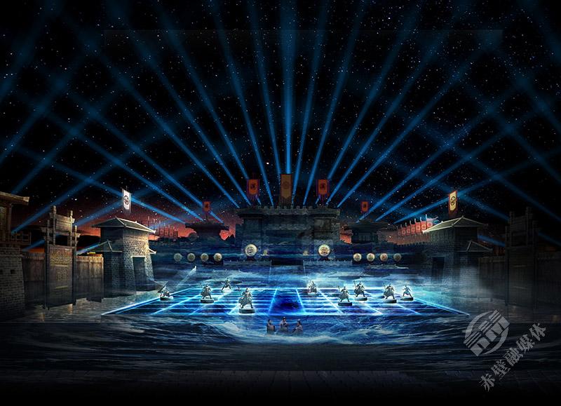 2000多年前,諸葛亮借的東風(fēng),是摧枯拉朽、克敵制勝的戰(zhàn)火雄風(fēng);2000多年后,三國(guó)赤壁古戰(zhàn)場(chǎng)借的東風(fēng),則是凝心聚氣、砥礪奮進(jìn)的時(shí)代之風(fēng)。演出將赤壁之戰(zhàn)這盤歷史大棋置于天地之間,以三國(guó)群雄為弈者,以演員和觀眾為棋子,利用光影特效與舞美裝置的變換,將戰(zhàn)役的多個(gè)關(guān)鍵情節(jié)進(jìn)行藝術(shù)化提煉與重構(gòu),運(yùn)用聲、光、電等現(xiàn)代舞美技術(shù),將歷史與現(xiàn)實(shí)、虛擬與真實(shí)融為一體,構(gòu)建起一個(gè)戰(zhàn)火紛飛、羽箭穿空的三國(guó)世界,讓赤壁之戰(zhàn)從史書中的符號(hào)躍升為可觸摸、可參與的精神場(chǎng)域。