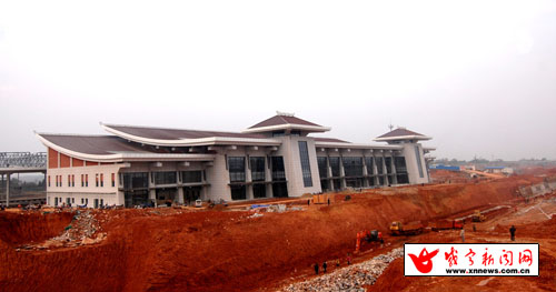 即將竣工的武廣客運(yùn)咸寧北火車(chē)站,高大氣派,既有民族特色,又充滿現(xiàn)代氣息。位于咸安區(qū)西側(cè)官埠橋鎮(zhèn),包括站房和站臺(tái)兩部分,總投資1.6億元,按照世界一流標(biāo)準(zhǔn)投資建設(shè)?偨ㄖ娣e9618平方米,一層設(shè)置車(chē)站設(shè)備用房、售票廳、候車(chē)廳及進(jìn)站集散廳、小件寄存廳、出站集散廳。候車(chē)廳及進(jìn)站集散廳設(shè)于站房中部,形成整體的大房間,上部結(jié)構(gòu)二層,局部三層,站房與站臺(tái)由地下通道連接。整個(gè)火車(chē)站用最新高鐵技術(shù)建造。(記者 江世棟 通訊員 古袆)